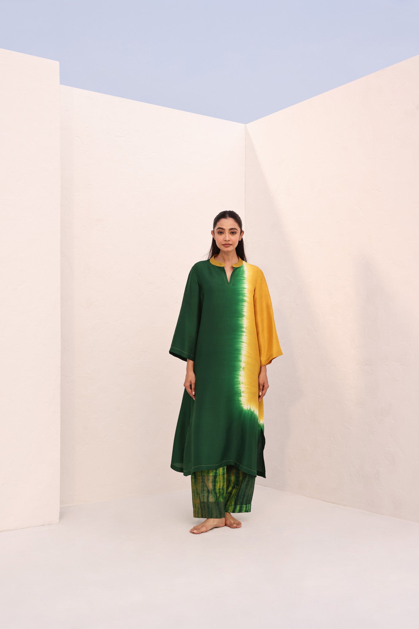 DEMI KURTA (2PC)/ GREEN - YELLOW