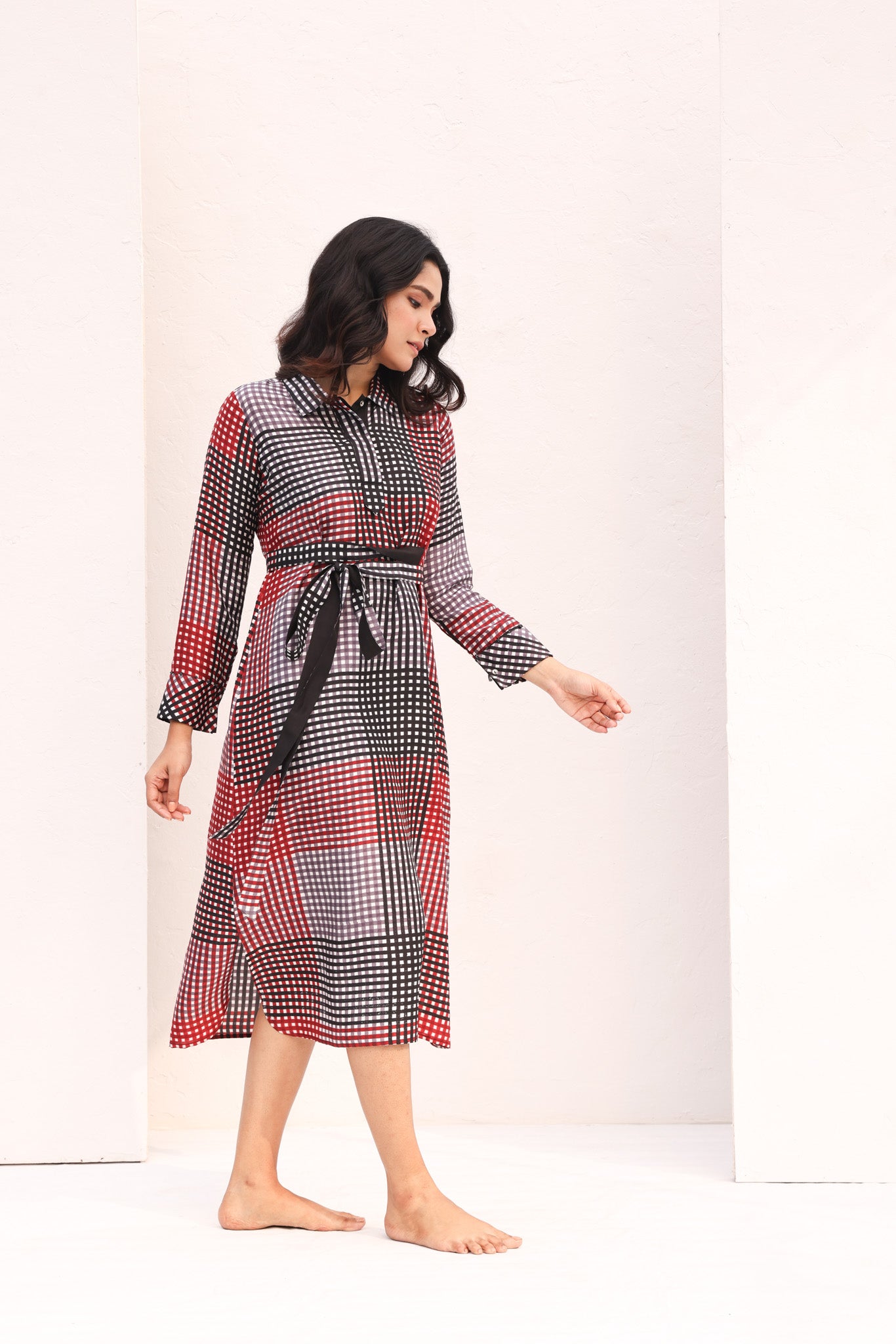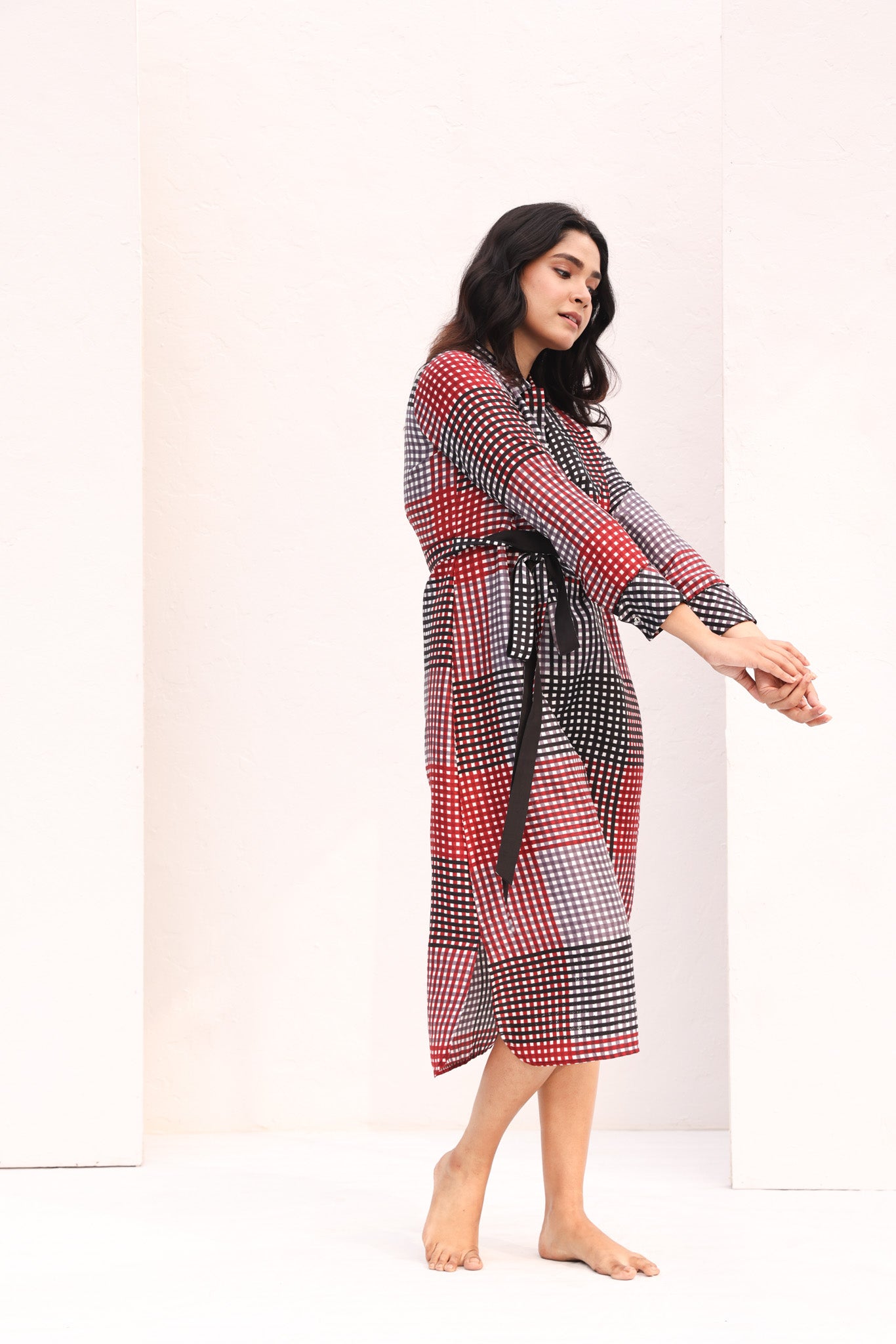 SILK TIE DRESS/BLACK